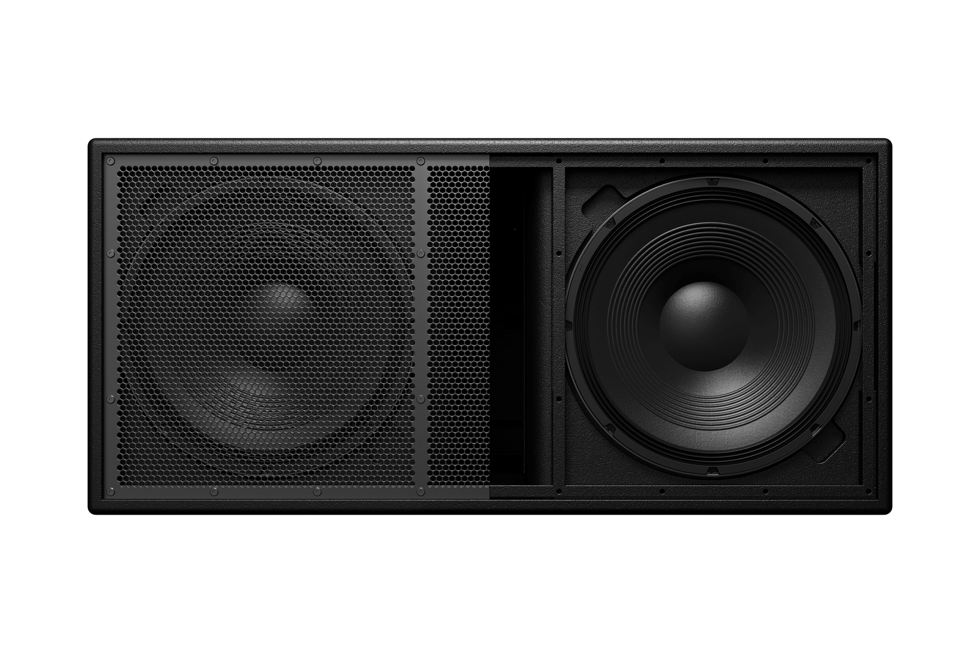 • Utilizes two direct radiating 18-inch, 2500 W cone drivers in a tuned enclosure, which provides maximum output with minimal distortion and smooth extended low frequency response.